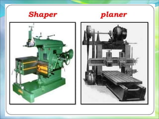 This document provides an overview of mechanical engineering and discusses several key sub-disciplines and processes including production engineering, metal forming, machining, casting, and welding. Production engineering involves converting raw materials into finished products through processes like forming, machining, joining, and casting. Metal forming changes a material's shape without changing its mass or composition, and can involve hot or cold working. Common metal forming examples include rolling, piercing, drawing, spinning, extrusion, and forging. Machining cuts material using machine tools like lathes, drilling machines, milling machines, and grinding machines. Metal casting involves melting metal and pouring it into a mold to solidify. Welding fuses materials together using heat, pressure, or