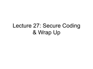 This lecture discusses principles of secure coding and lessons learned from past security incidents. It covers topics like:
