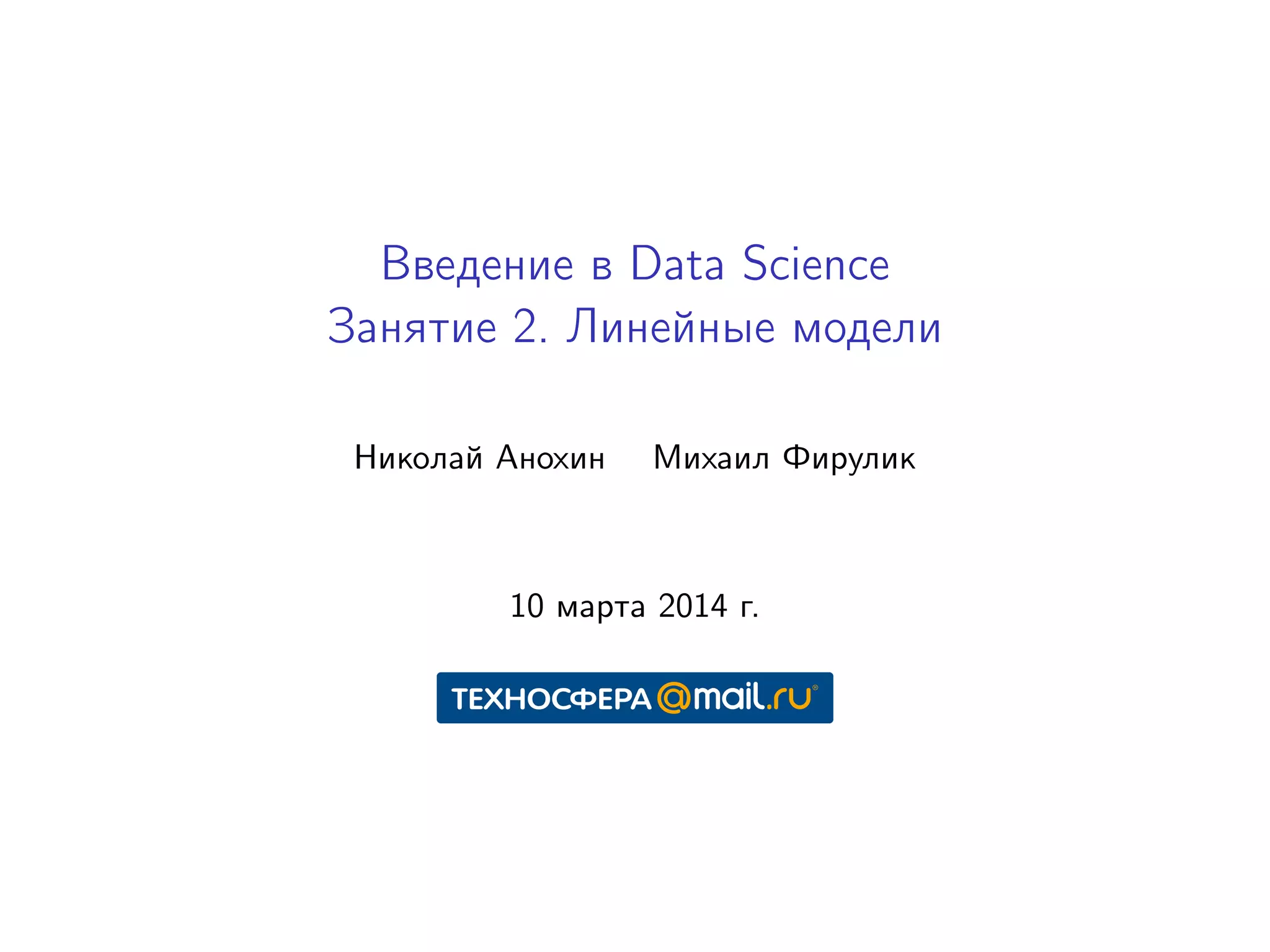 Документ представляет собой конспект занятия по линейным моделям в области data science. Он охватывает темы выбора модели, оптимизации параметров, классификации, а также различные подходы, такие как метод максимального правдоподобия и байесовский вывод. В конце приведены практические задания и ключевые даты для выполнения.