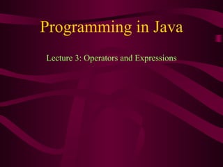 This document summarizes operators and expressions in Java. It discusses the four main categories of operators: arithmetic, bitwise, relational, and logical. For each category, it provides examples of the different operators and how they work. The key points covered include: