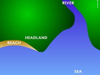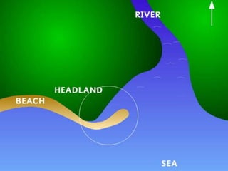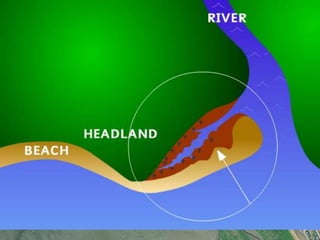- Beaches are formed through deposition of sand and pebbles in sheltered bays by waves that have refracted around the bay and lost energy. Ridges called berms form along beaches and show high tide marks.