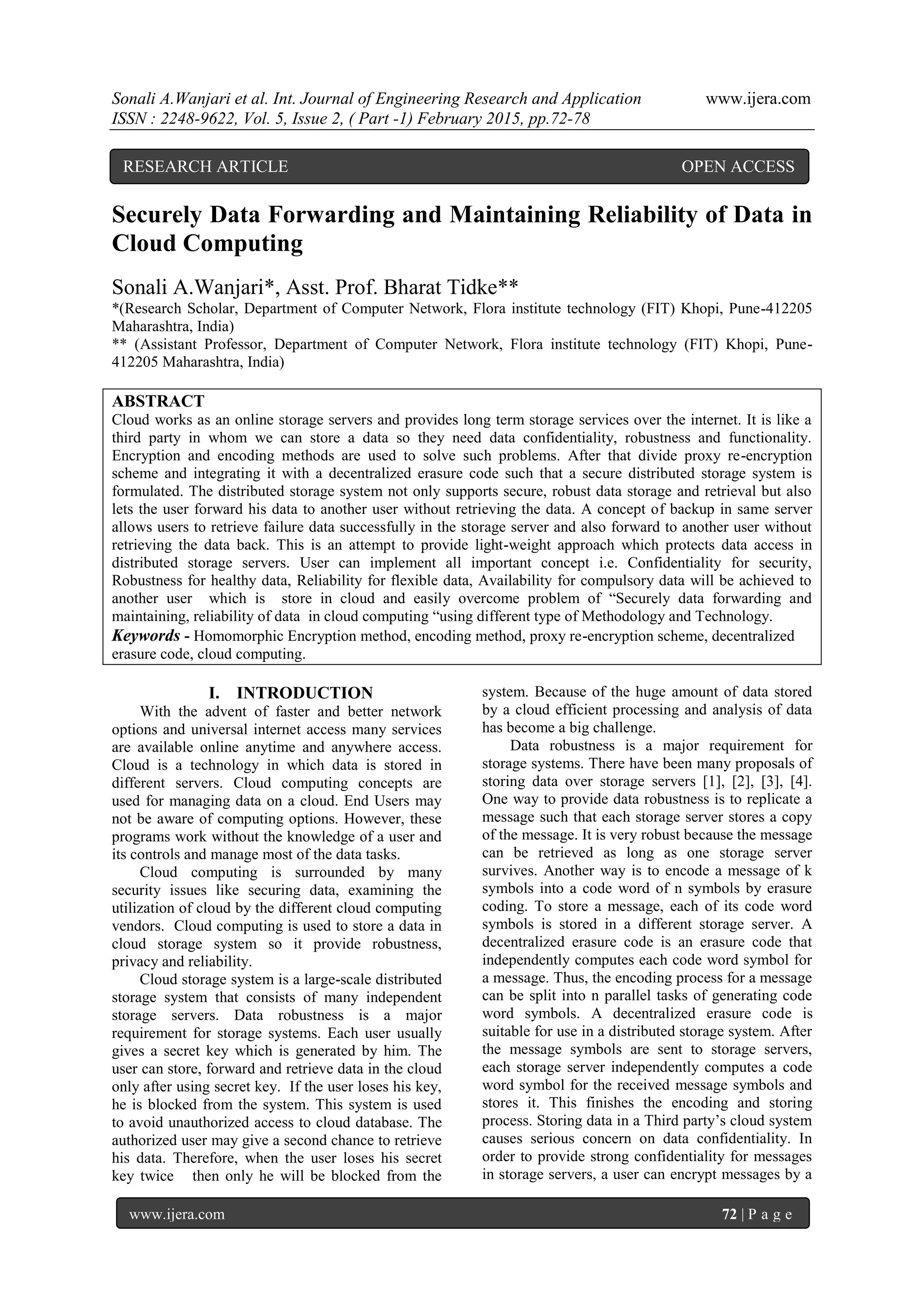 This document discusses a secure distributed storage system in cloud computing, which integrates encryption and decentralized erasure coding to ensure data confidentiality, robustness, and reliability. It introduces a threshold proxy re-encryption scheme that allows secure data forwarding without retrieving the data, thereby making cloud storage safer and more efficient. The research highlights the importance of these methodologies for addressing security challenges in cloud environments.