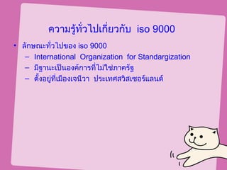 • ลักษณะทั่วไปของ iso 9000