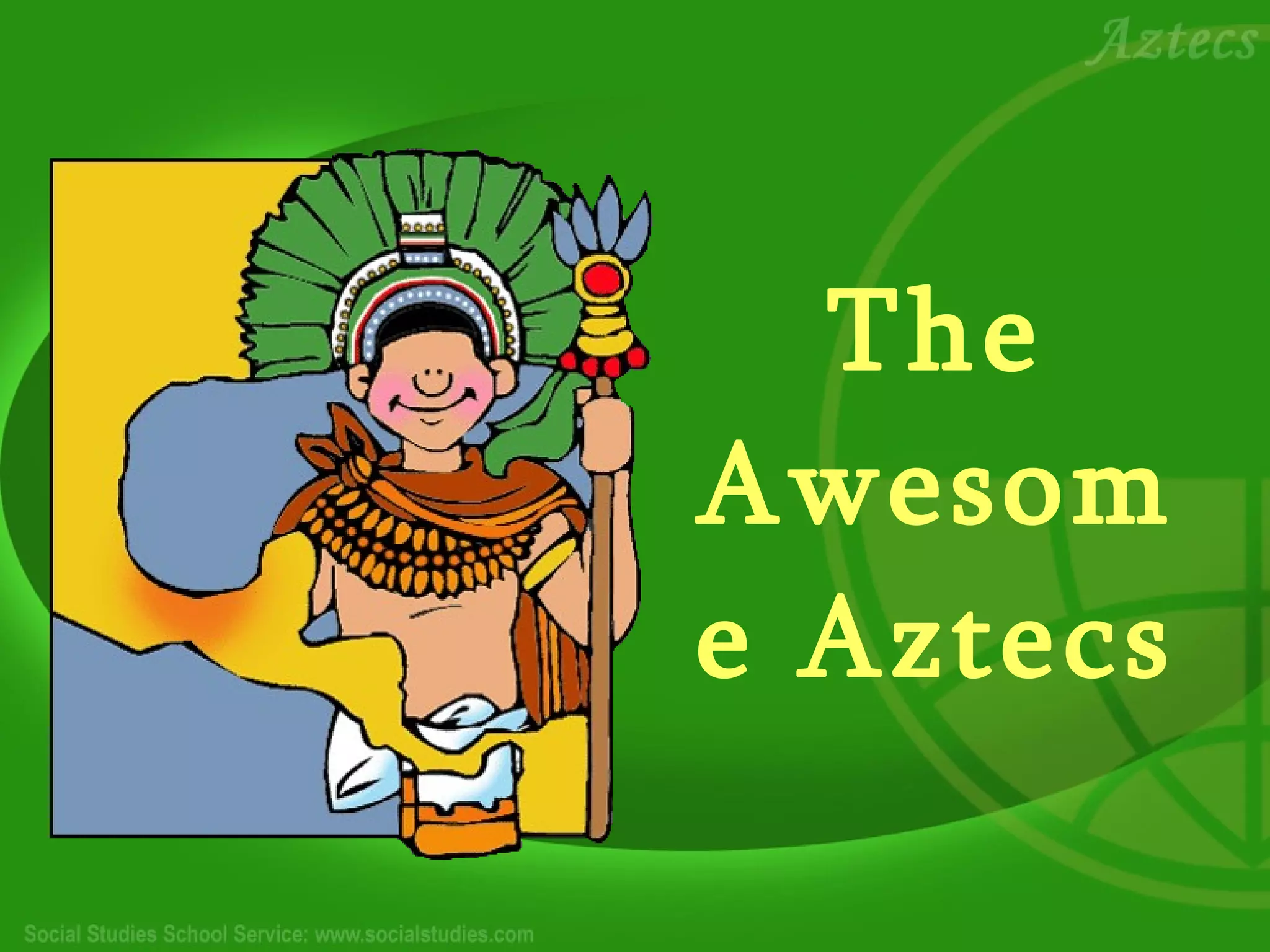 The Aztecs lived in ancient Mexico for 400 years. They originally moved frequently due to not being welcome as neighbors, as they practiced human sacrifice to please their gods. They eventually settled in the Valley of Mexico, building canoes to fish and trade. The Aztecs established a system of free public schools mandatory for all children, including girls and slaves, to educate the population and train specialists in fields like engineering, medicine, and warfare. As their cities grew, the Aztecs created floating gardens on Lake Texcoco to solve food shortages by growing crops on anchored rafts.