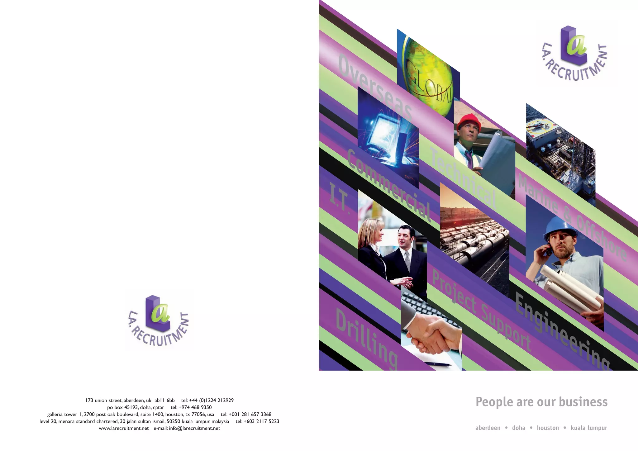 LA Recruitment is a leading global recruitment firm specializing in placing skilled personnel for engineering, marine, offshore, and commercial roles. With offices in Aberdeen, Doha, Houston, and Kuala Lumpur, LA Recruitment has expertise recruiting for oil and gas, construction, drilling, and other energy projects worldwide. LA Recruitment utilizes a database system and proven recruitment techniques to source qualified candidates that meet clients' needs.