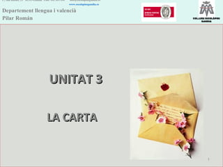 UNITAT 3 LA CARTA C/ San Rafael, 25 46701-Gandia Tfno. 962 965 096 [email_address] www.escolapiasgandia.es Departement llengua i valencià Pilar Román COL.LEGI ESCOLÀPIES GANDIA