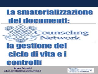 Il documento discute la conservazione digitale in rapporto al codice civile e alle normative vigenti, evidenziando l'importanza di un metodo affidabile per l'utilizzo dei documenti digitali. Viene presentata la dematerializzazione come un processo di transizione dalla documentazione cartacea a quella informatica nelle pubbliche amministrazioni, da gestire in modo interdisciplinare. Si enfatizzano i requisiti e le regole per garantire l'integrità e la sicurezza dei documenti informatici nel contesto della gestione documentale.