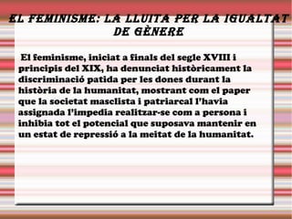 El fEminismE: la lluita pEr la igualtat