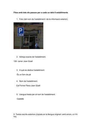 Fitxa amb totsels passos per a cada un dels 6 establiments