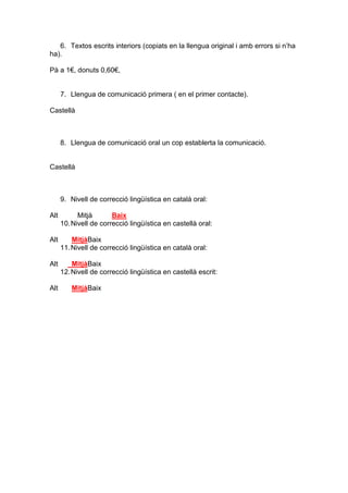 11.Nivell de correcció lingüística en català oral: