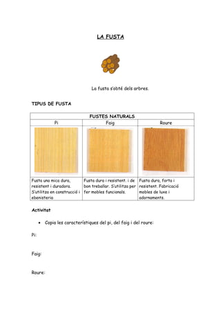 • Quin és el nom de les fustes naturals i artificials què has après?
