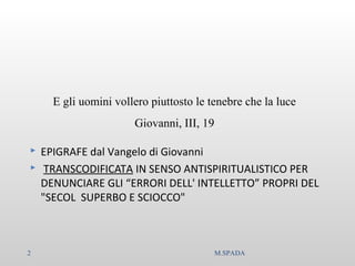 La "Ginestra" di Giacomo Leopardi del 1836-37 affronta tematiche di denuncia contro il secolo XIX, descritto come 'superbo e sciocco', mettendo in luce la distanza tra la vera libertà di pensiero e l'illusione di progresso. Attraverso la figura della ginestra, simbolo di resilienza in un paesaggio desolato, Leopardi esplora il dolore umano e la necessità di una convivenza civile. Il testo critica l'ottimismo di una società che ignora il regresso filosofico e riporta il pensiero a una 'barbarie dei tempi bassi'.
