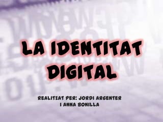 La identitat digitalés…La identitat digital és el jo d’Internet; és el conjunt de trets propis d'un individu que, a la xarxa, el diferencien d'altres identitats i permeten determinar qui és i verificar qui diu ser. Es constitueix tant pel que diem o fem i la representació gràfica a la xarxa com pel que altres diuen o fan en relació amb aquesta identitat.