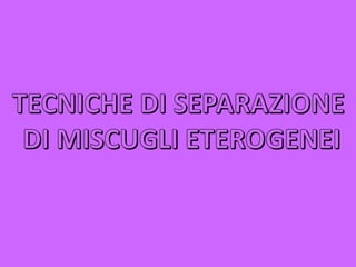 La materia è definita come tutto ciò che ha massa e occupa spazio, e può essere classificata in corpi, sostanze pure e miscugli. I miscugli possono essere omogenei o eterogenei, e vari metodi fisici possono essere utilizzati per separarli. Vengono inoltre descritti processi come la cristallizzazione e le tecniche di separazione come distillazione e cromatografia.
