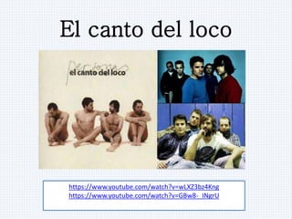 The document contains links to YouTube videos of songs by various artists, including El Canto del Loco, Dani Martin, Melendi, Malú, Jennifer Lopez, Avril Lavigne, Cher Lloyd, Maná, Imagine Dragons, and The Pretty Reckless. Each artist has 2 links listed, presumably to different songs available on their YouTube channel.