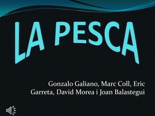 TIPUS DE PESCAPescade tresmall:Esfa servir amb malles, que es deixenfixes al mar i permeten que les llagostes, altresmol•luscs i crustaciss’enganxin a aquestes. Després de col•locar les malles, s’espera un certtempsfins que s’extreuen de l’aigua i es poden recollirelsmol•luscs i crustacisenganxats.Palanguera:Enaquesttipus de pesca es fa servir una gran cordaambhams que s’aguantaamb unes boies. En el moment de pesca, el vaixelldeixasurar la corda al mar i s’espera una estonaperquèelspeixosmosseguinelshams i siguinpescats. Després, el vaixellrecull la corda i ambaquestaelspeixospescats.