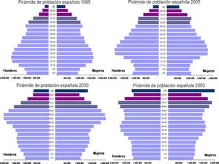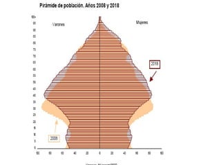 La piràmide depoblació espanyola té forma de bulb i es caracteritza per: