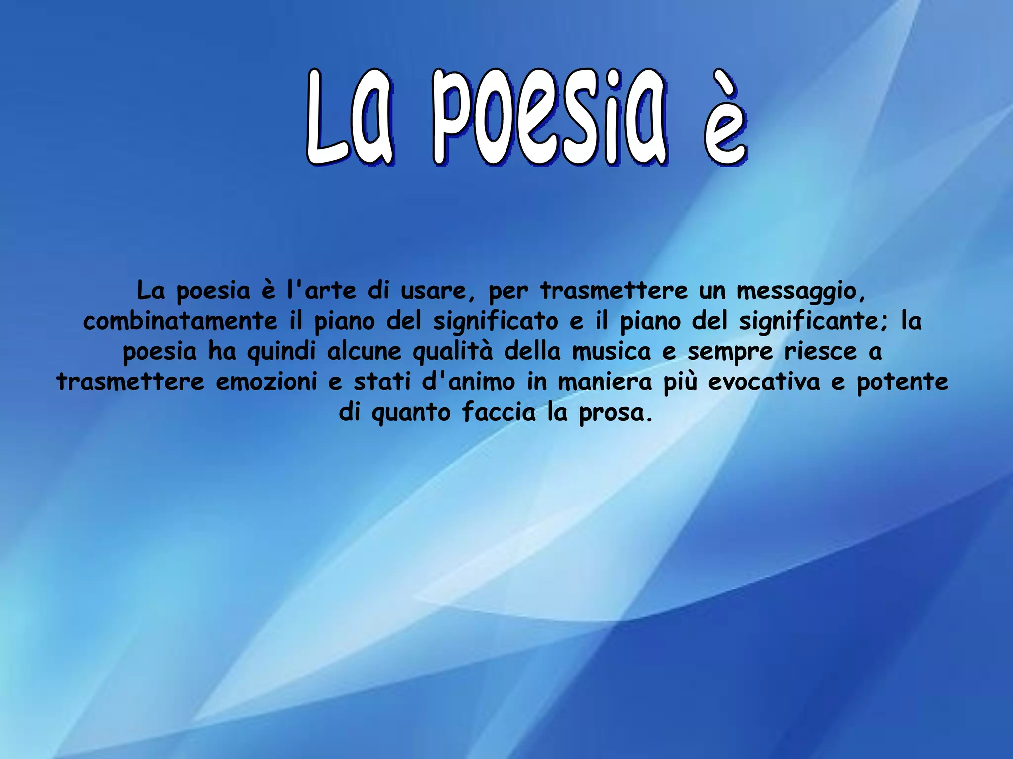 La poesia è un'arte che combina significato e suono per trasmettere emozioni, risultando più evocativa della prosa. Essa non ha un significato compiuto come la prosa, poiché la comunicazione avviene anche a livello emotivo. La sua traduzione è complessa, poiché il suono e il ritmo originali si perdono, richiedendo un adattamento spesso solo approssimativo.