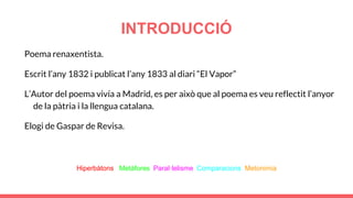 Presentació sobre l'oda a "La pàtria", de Bonaventura C. Aribau. A càrrec de Carlota Aguado, Noelia Babiano i Iria Duarte, de primer de batxillerat (1.2). Institut Isaac Albéniz de Badalona. Treball sobre "Antologia de poesia catalana". Curs 2015-16.