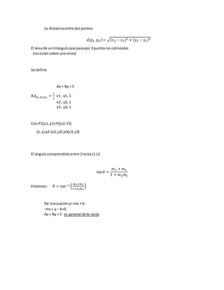 Una recta sepuede definirsi se tiene dospuntosP1,P2tal que P(x,y) P2(x2,y2).