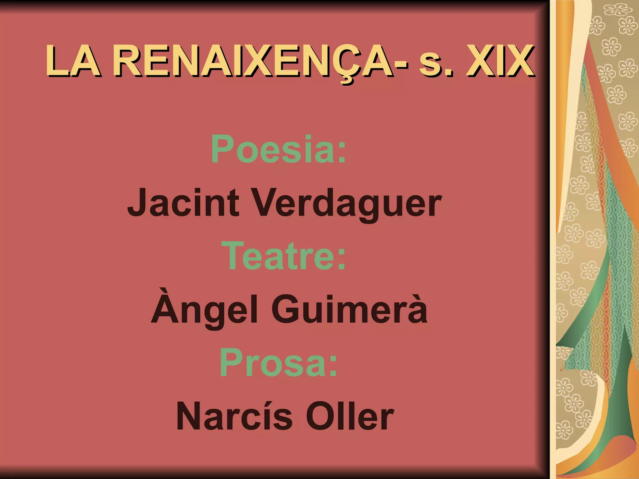 POESIA Creador dela llengua catalana literària moderna Consolida el moviment de la Renaixença JACINT VERDAGUER