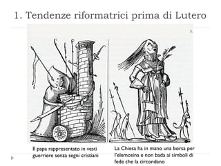 La Riforma Protestante iniziò con movimenti riformatori nel medioevo, culminando con Martin Lutero che criticò le pratiche della Chiesa, in particolare la vendita delle indulgenze. Lutero propose il principio 'sola fide' e 'sola scriptura', sostenendo che la salvezza dipende esclusivamente dalla fede e che ogni cristiano dovrebbe interpretare la Bibbia autonomamente. Le sue 95 tesi, affisse nel 1517, scatenarono un ampio movimento di dissenso e portarono a una ristrutturazione radicale della Chiesa e della religione.