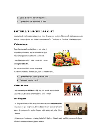 afectar a que tinguem una millor o pitjor salut són: l’alimentació, l’estil de vida i les drogues.