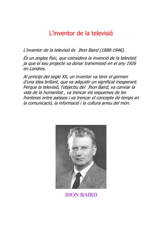 L’inventor de la televisió és Jhon Baird (1888-1946).