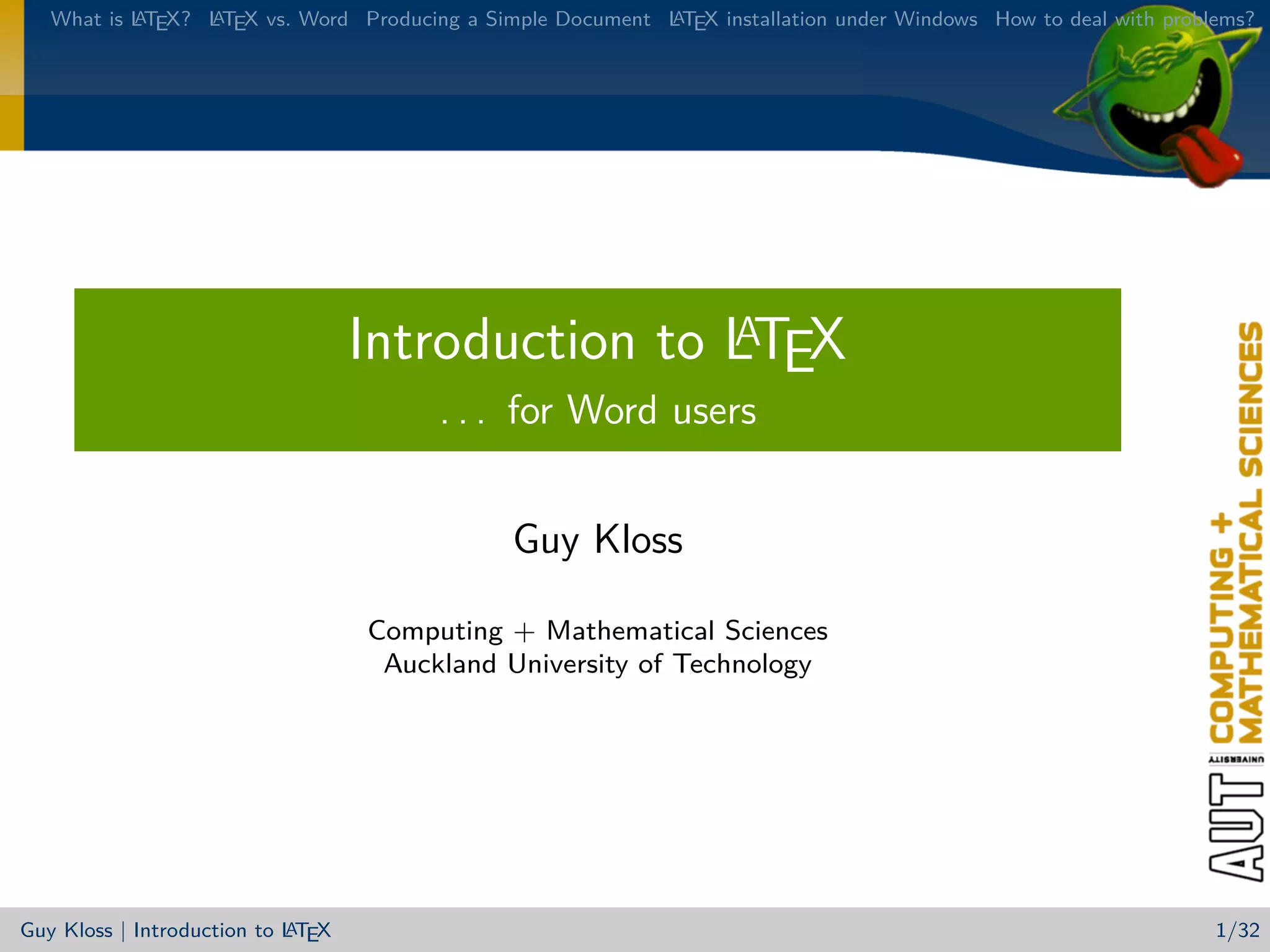 This document introduces LaTeX, an open-source document preparation system. LaTeX uses TeX as its typesetting engine and allows authors to focus on the content instead of formatting. It offers advantages over Word like portability, flexibility, precise control over formatting, and high quality output, especially for mathematical formulas. The document discusses what LaTeX is, how to pronounce it, its advantages over Word for large projects, and its ability to produce higher quality documents than Word.