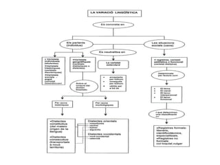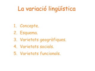La variació lingüísticaConcepte. Esquema. Varietats geogràfiques. Varietats socials. Varietats funcionals.