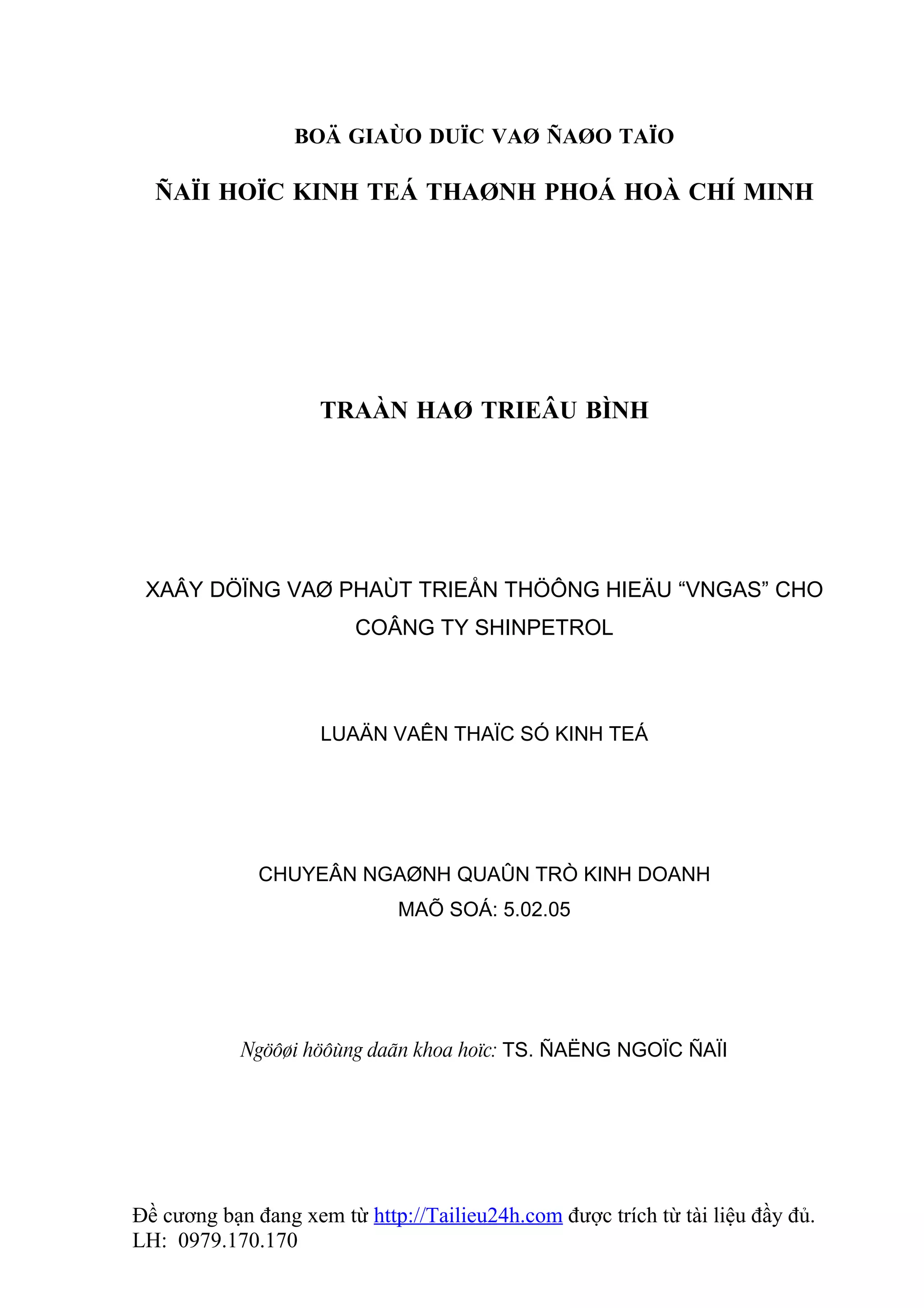Tài liệu trình bày quá trình xây dựng và phát triển thương hiệu 'vngas' của công ty Shinpetrol trong bối cảnh thị trường LPG tại Việt Nam. Nó bao gồm lý thuyết thương hiệu, thực trạng thị trường, và các giải pháp nhằm phát triển thương hiệu thành công. Mục tiêu là nâng cao khả năng cạnh tranh và tạo ra hình ảnh thương hiệu độc đáo trong tâm trí người tiêu dùng.