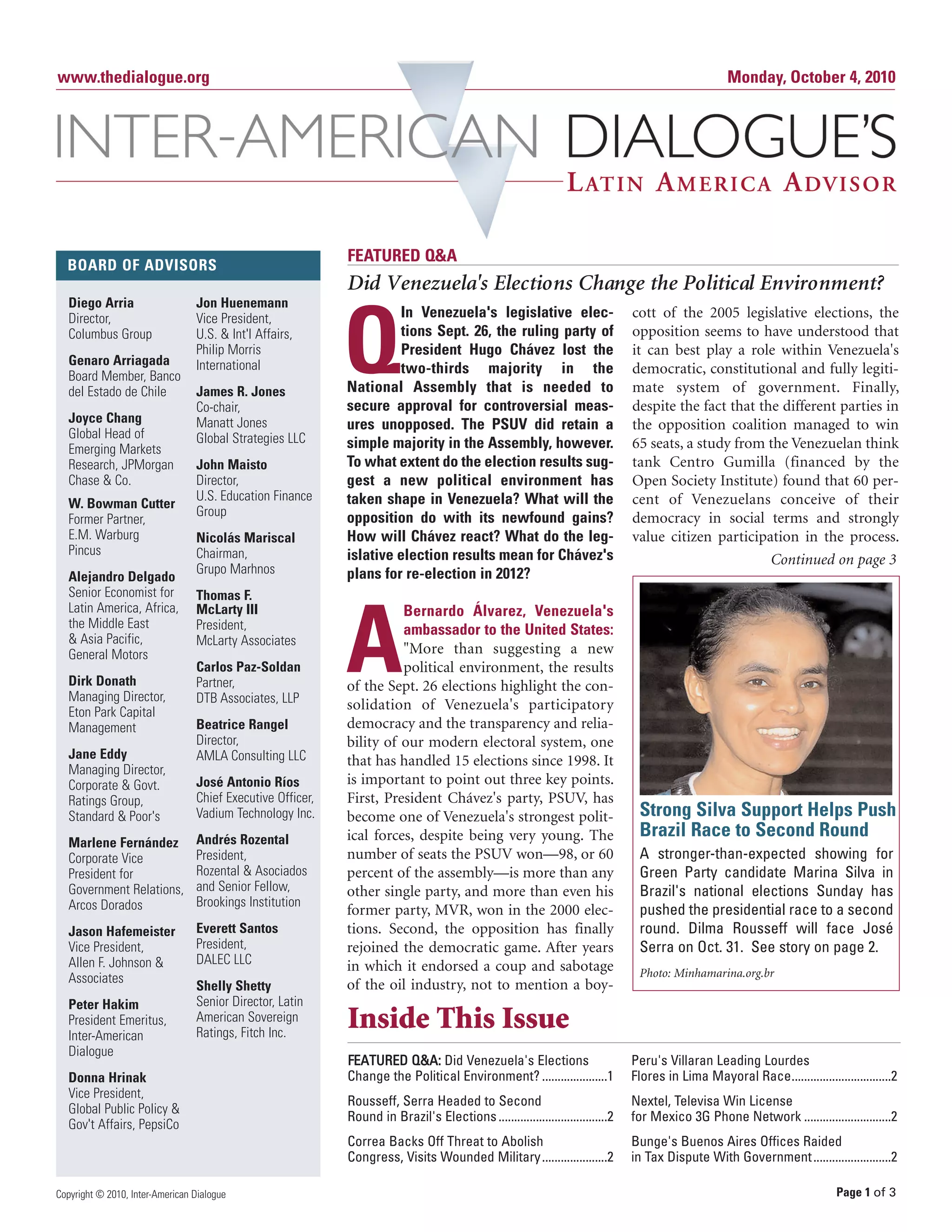 In the September 26 legislative elections in Venezuela, President Hugo Chávez's ruling party lost its two-thirds majority in the National Assembly, retaining only a simple majority. The results indicate a shifting political landscape, with the opposition rejoining the democratic process after years of boycotts and sabotage. While many Venezuelans expressed dissatisfaction with Chávez's governance, especially regarding security and economic issues, the opposition faces challenges in unifying and presenting a compelling alternative vision for the future.
