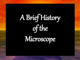 The document provides a brief history of the microscope, describing its evolution from early simple microscopes used by Greeks and Romans over 1000 years ago to more advanced compound microscopes developed in the 16th century by Hans Janssen and Zacharias Janssen that used two lenses. It then discusses key microscope developers and innovations, such as Robert Hooke using one in 1655 to observe cell structures he called "cells", and Anthony van Leeuwenhoek observing single-celled organisms in 1673. The document also outlines the basic parts and functions of the compound light microscope and how to properly use, care for, and calculate magnification of a microscope.