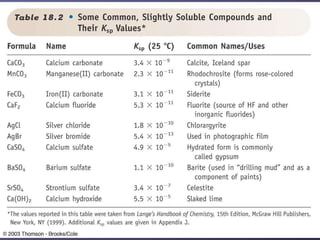 This lab experiment investigated how the concentration and conductivity of a sodium chloride solution changed as sodium chloride was added incrementally. The solution's conductivity increased with each addition as the number of ions increased, until the fifth addition when undissolved salt remained, indicating saturation. The goal was to prepare saturated solutions of various ionic compounds and determine their concentrations using Ksp calculations and measurements.