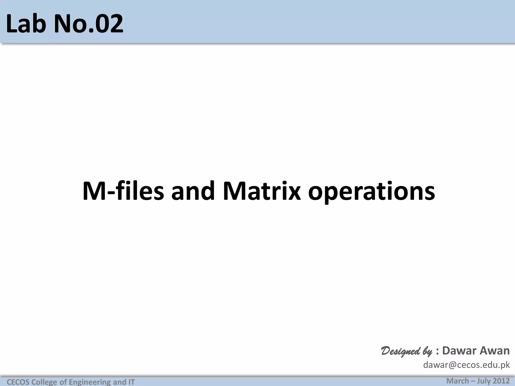 This document discusses matrices and matrix operations in MATLAB. It begins by defining what a matrix is and how they are represented in MATLAB. It then covers topics like defining matrices, accessing matrix elements, built-in matrix functions like diag, eye, and size, and matrix operations like addition, multiplication, and dot notation. The document ends by discussing M-files in MATLAB, including how to create script and function M-files, use comments, and provide examples.