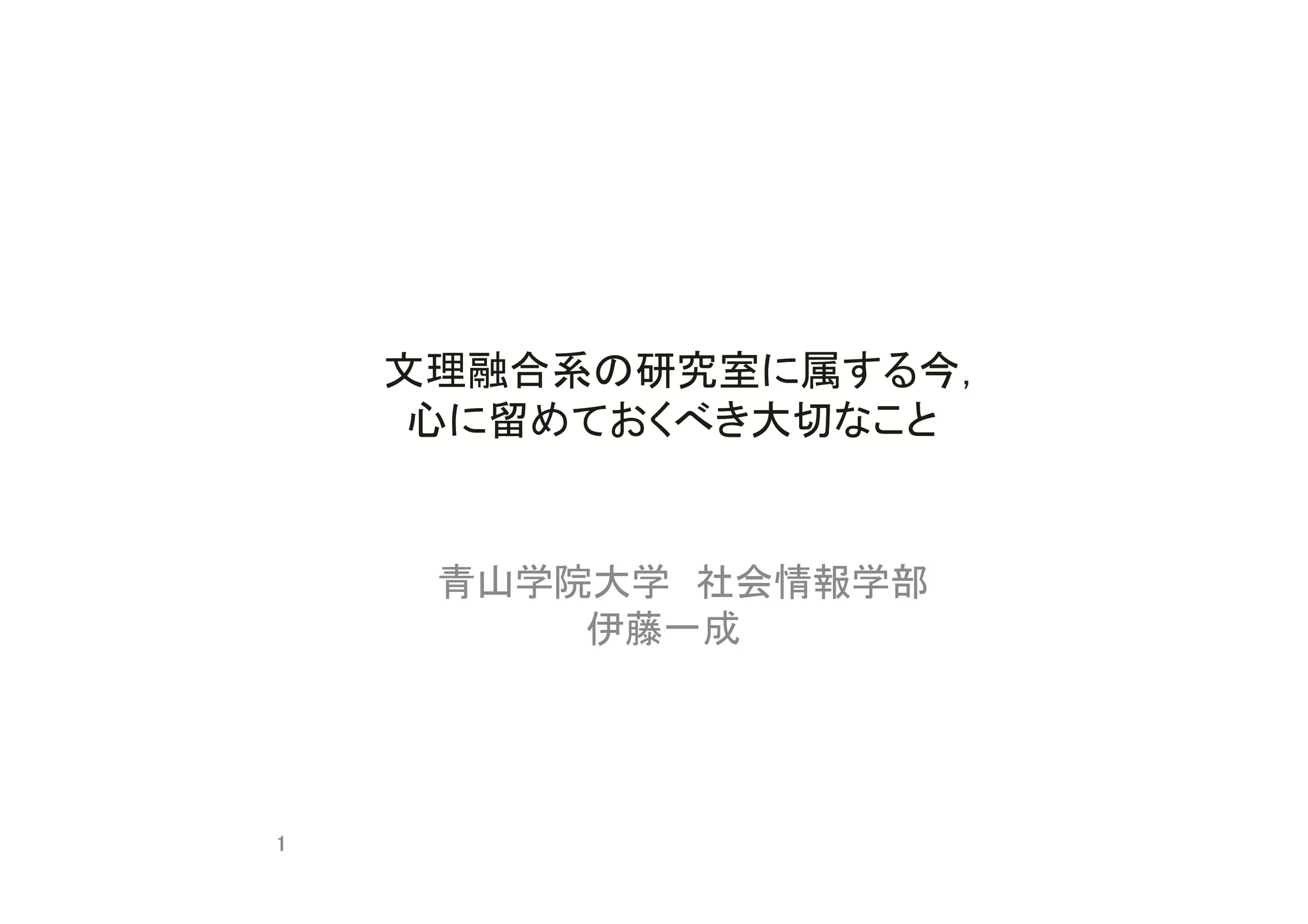 文理融合系の研究室に属する今, 心に留めておくべき大切なこと 青山学院大学 社会情報学部 伊藤一成 1
