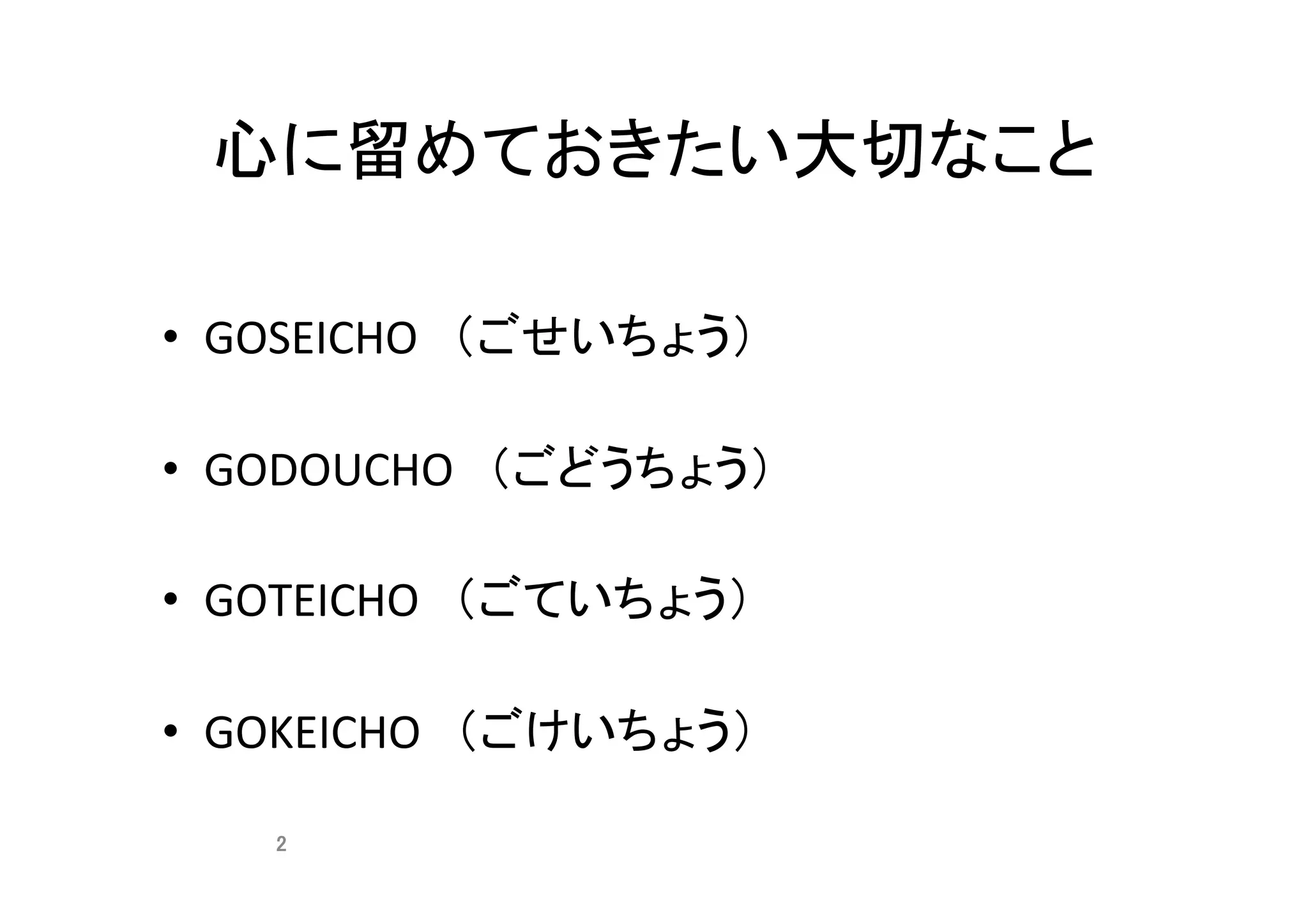 心に留めておきたい大切なこと • GOSEICHO (ごせいちょう) • GODOUCHO (ごどうちょう) •