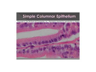 This document discusses the different types of tissues found in a lab sample, including areolar connective tissue and pseudostratified columnar epithelium. It notes that areolar connective tissue and questions whether the tissue is pseudostratified columnar epithelium, suggesting these two tissue types may be present in the sample under examination.