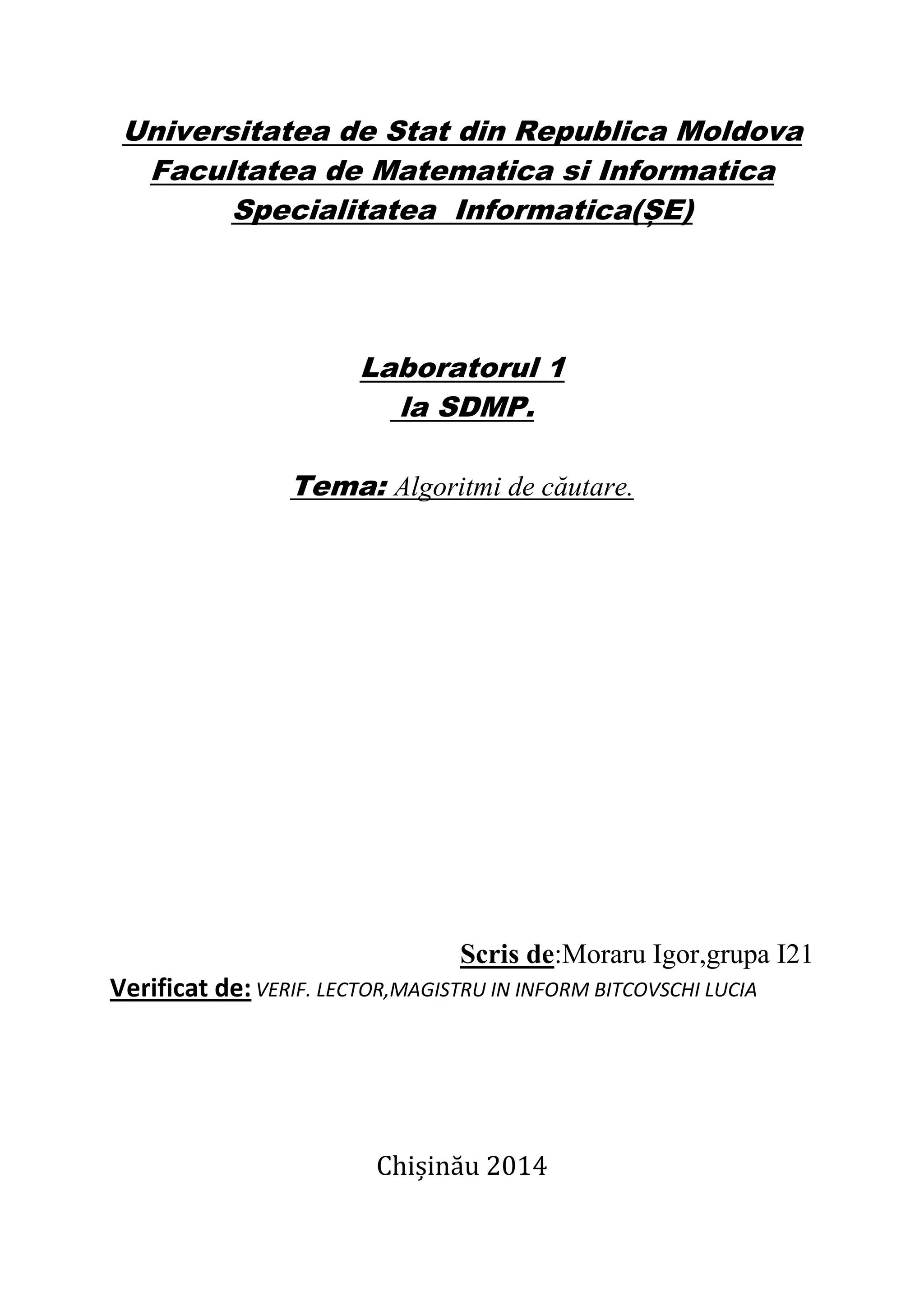 Verificat de: VERIF. LECTOR,MAGISTRU IN INFORM BITCOVSCHI LUCIA