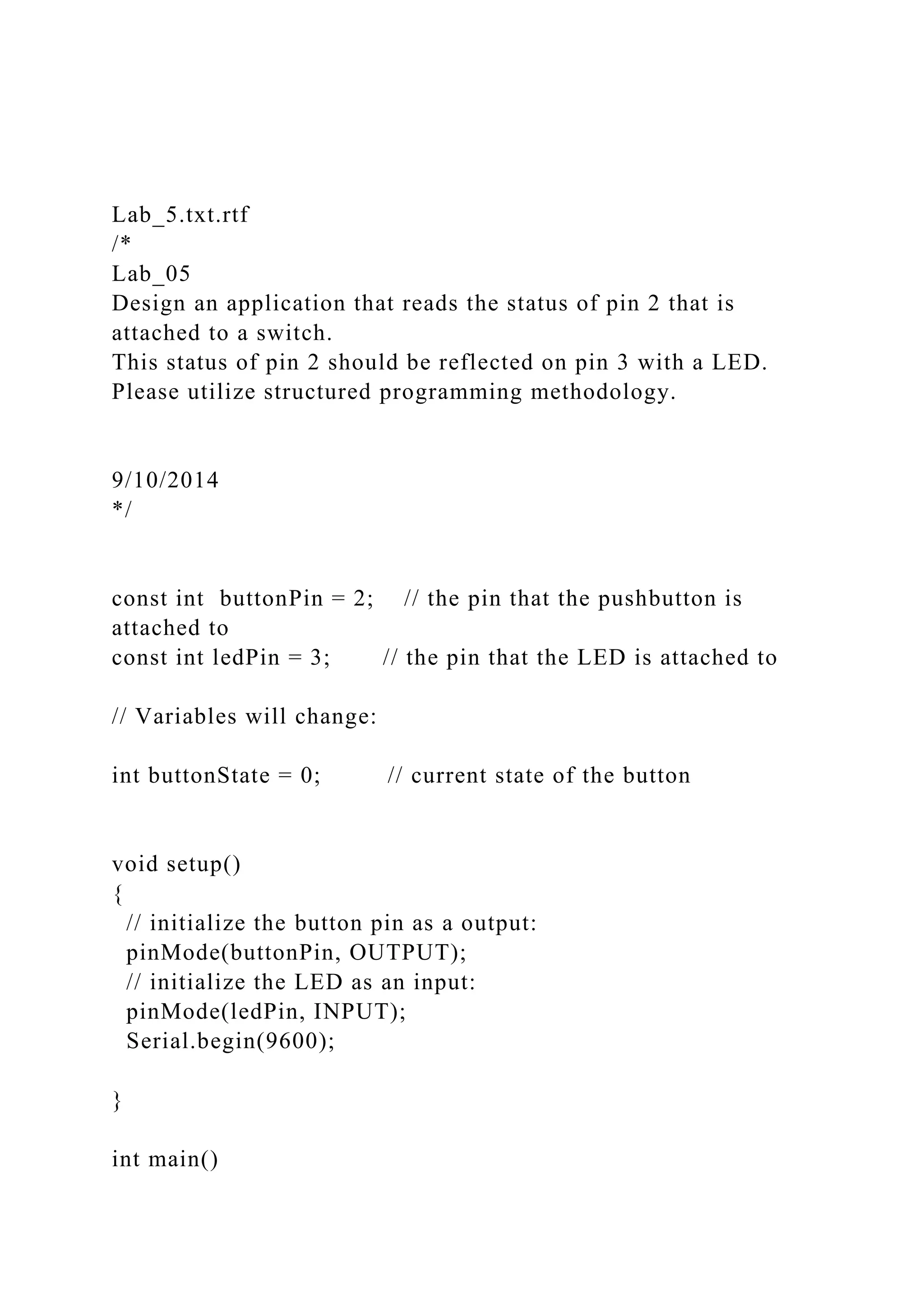The document summarizes a series of labs focused on designing applications for reading button states and controlling LEDs using structured programming in Arduino. Each lab, from lab 3 to lab 16, specifies the setup for different functionalities like responding to button presses, converting analog signals, and displaying temperature in Fahrenheit and Celsius. The examples include various programming practices like function declarations and looping structures tailored for specific input/output operations.