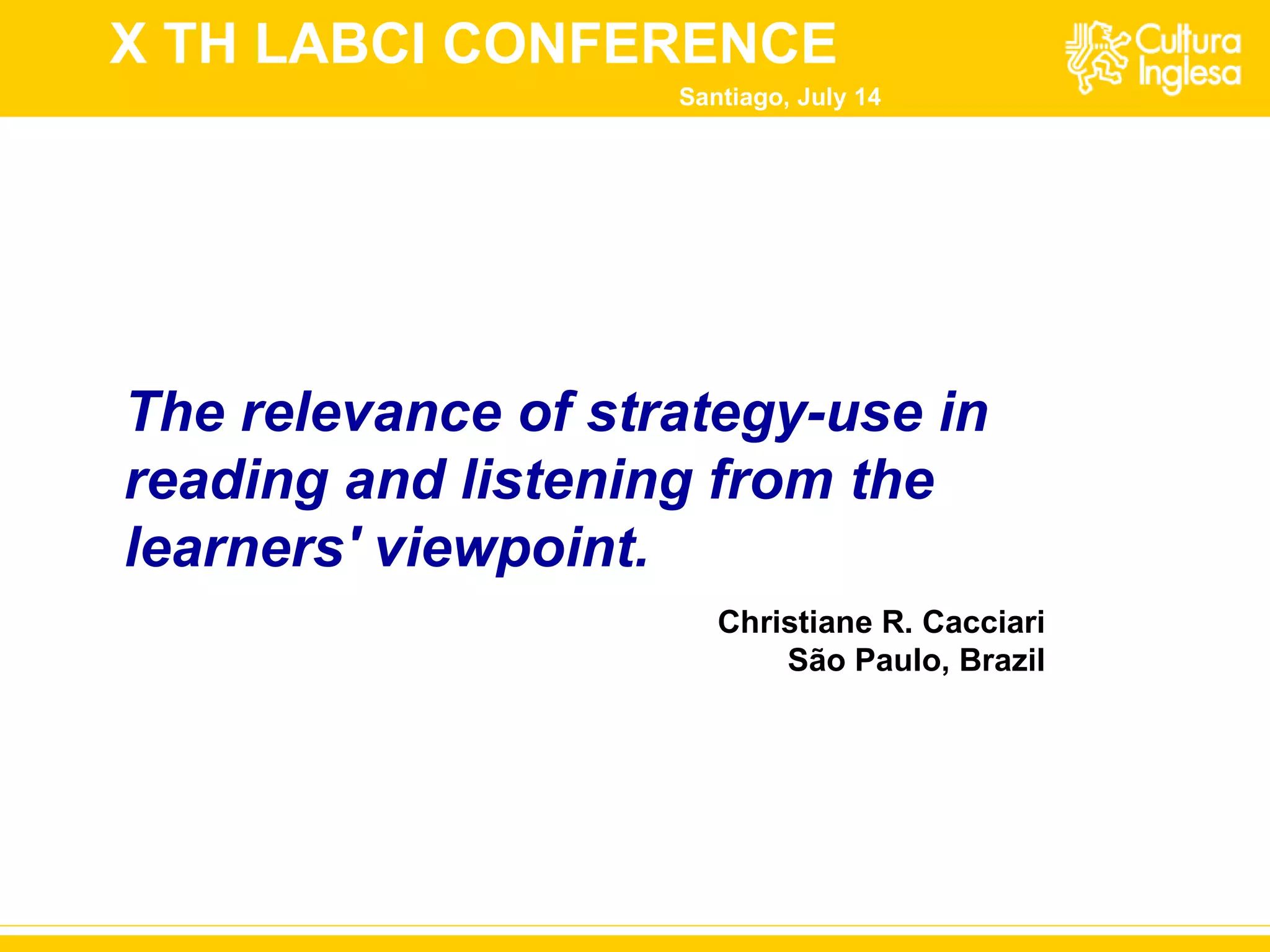 The document discusses the relevance of strategy use in reading and listening from learners' perspectives during an experimental study with teenagers. It highlights the process of raising awareness about various strategies, their effectiveness, and the differences in comprehension between experimental and control groups. The findings indicate that students who engaged with strategy use were more conscious of their learning, while those in the control group demonstrated less awareness and lower performance.