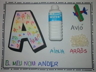 This document appears to be the title page for a book of letters for a 3-year-old class in Catalan and Spanish. It introduces the book as "Our Book of Letters" in both Catalan and Spanish and indicates it is for a 3-year-old class.