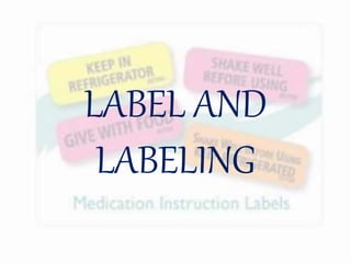 The document discusses labeling technologies in the pharmaceutical industry, emphasizing the importance of accurate and legal compliance for product information. It details various types of labels, adhesives used, packaging inserts, and outserts, as well as labeling machinery specifications. The conclusions highlight the critical role of labeling in ensuring safe and effective use of drugs, guided by regulatory requirements.