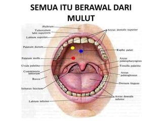 Dokumen tersebut membahas tentang labiokisis, yaitu keadaan dimana bibir tidak bisa menutup karena adanya celah. Dokumen menjelaskan definisi, jenis, penyebab, manifestasi, komplikasi, penatalaksanaan, dan peran perawat dalam merawat pasien labiokisis. Dokumen ini memberikan informasi mengenai kondisi medis labiokisis beserta tindakan keperawatan yang perlu dilakukan untuk merawat pasien tersebut.