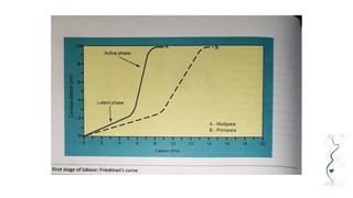 1) The first stage begins with onset of true labor pain and ends with full dilation of the cervix. It includes the latent and active phases.