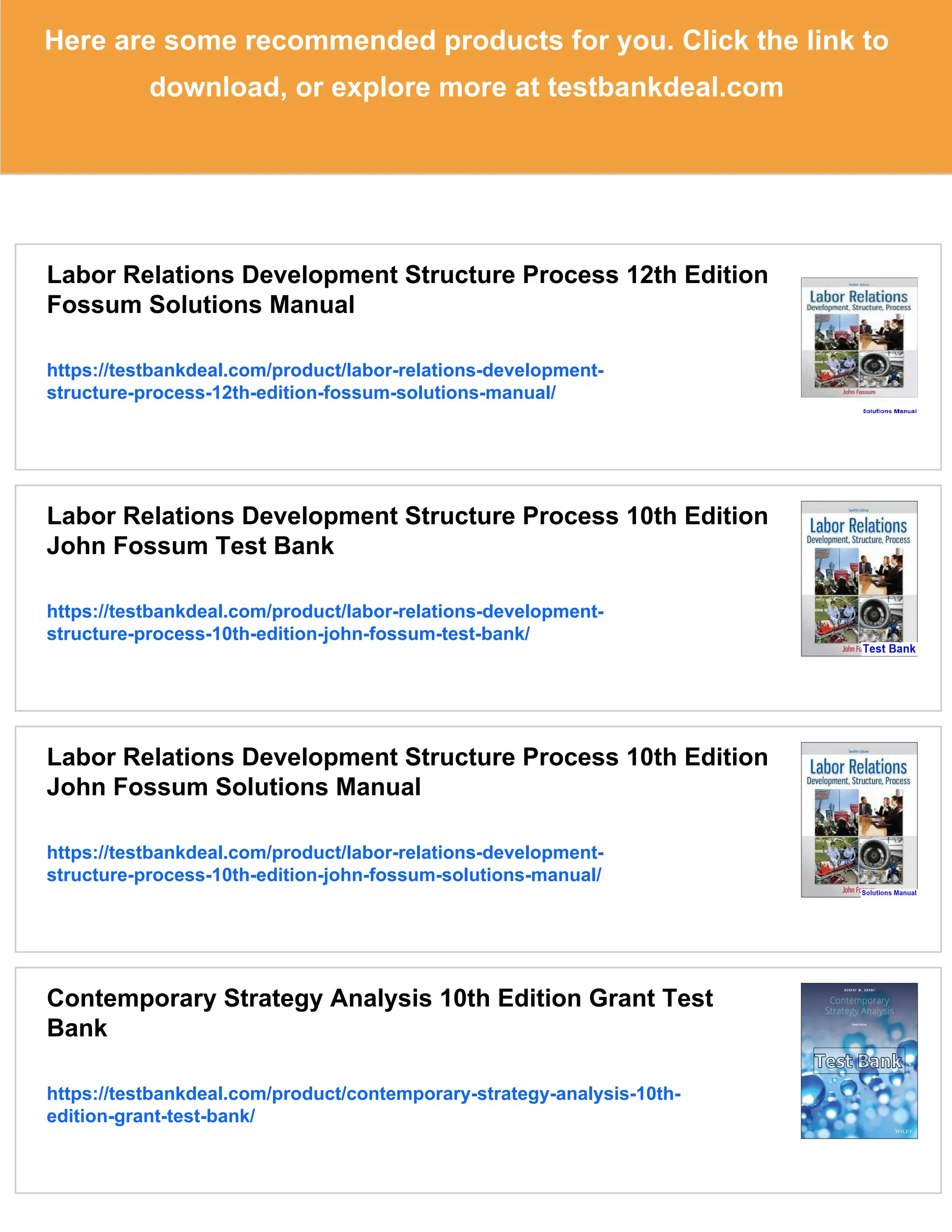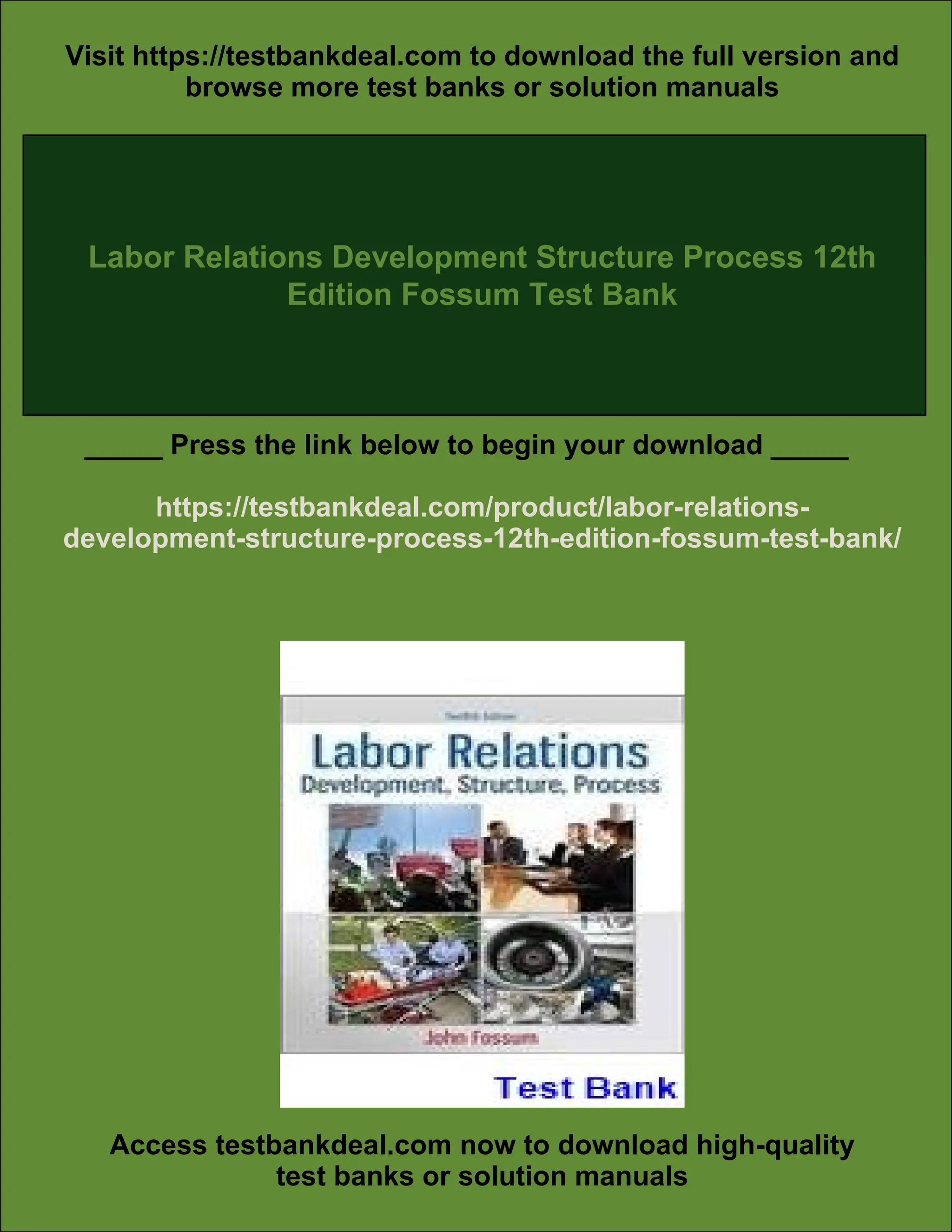Labor Relations Development Structure Process 12th Edition Fossum Test Bank