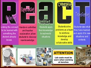This document discusses the pedagogical context and goals of science laboratory instruction. It explains that science laboratories allow students to engage in guided inquiry, collect and analyze data, and develop explanations through hands-on activities. The document outlines several major goals for students, including developing conceptual understanding and scientific skills. It also discusses challenges of laboratory instruction and strategies to address them, such as preparation, alternative plans, and emphasizing that mistakes can lead to discovery.