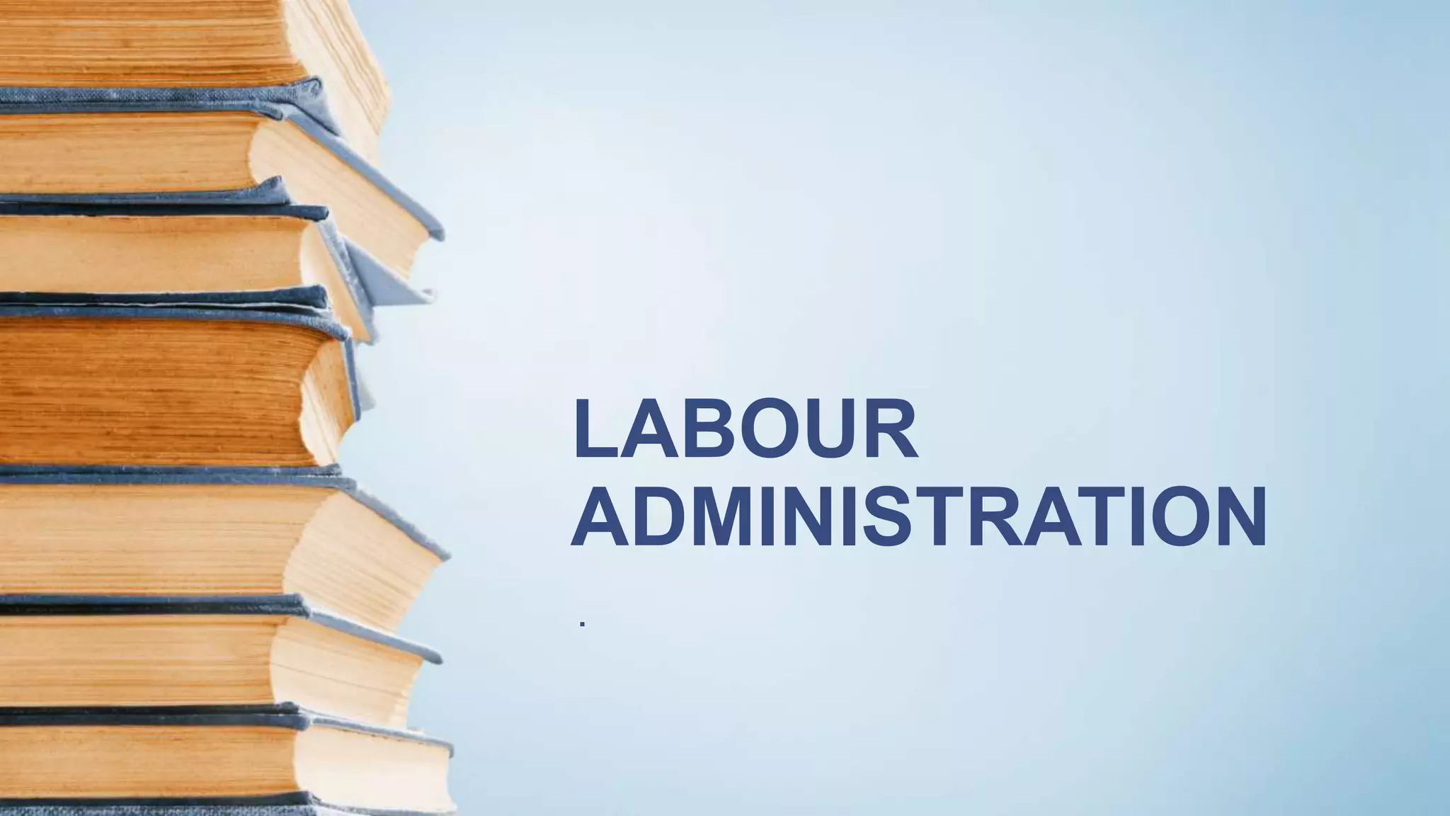 Labour administration is concerned with labour welfare and social policy implementation. It establishes the framework for developing, implementing, coordinating, and enforcing national labour policies and laws. The key areas of national labour policy include employment and training, labour protection, inspection, and relations. Labour administration covers activities related to labour, employment, information/research, and labour-management relations. At the central level in India, the Ministry of Labour is responsible for administration and the Chief Labour Commissioner's office assists with enforcement. Other agencies include social insurance organizations, a labour education board, and industrial tribunals.