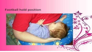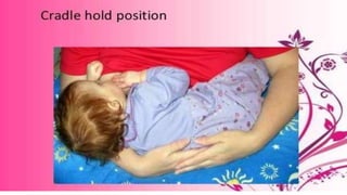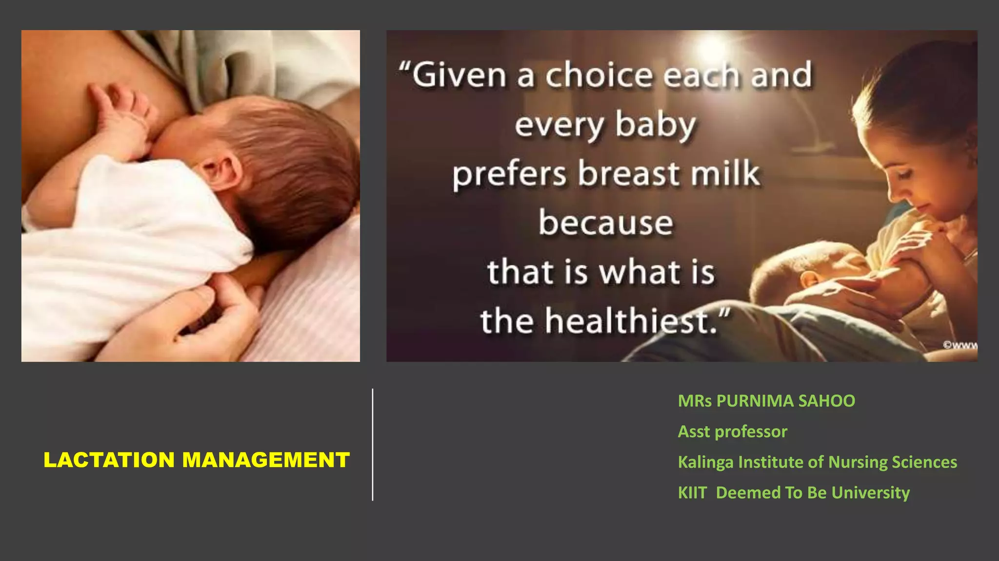 The document discusses lactation management and breastfeeding. It provides objectives of lactation management including reviewing public health impacts and understanding physiology. It outlines recommendations for exclusive breastfeeding for six months and continued breastfeeding for at least one year. Common breastfeeding problems like low milk supply, mastitis and breast abscess are identified. The physiology of lactation including galactokinesis, lactogenesis and galactopoiesis is explained. Benefits of breastfeeding for both mother and infant are highlighted. Drugs to improve milk production and positions for breastfeeding are outlined. Contraindications and problems in breastfeeding are also discussed.
