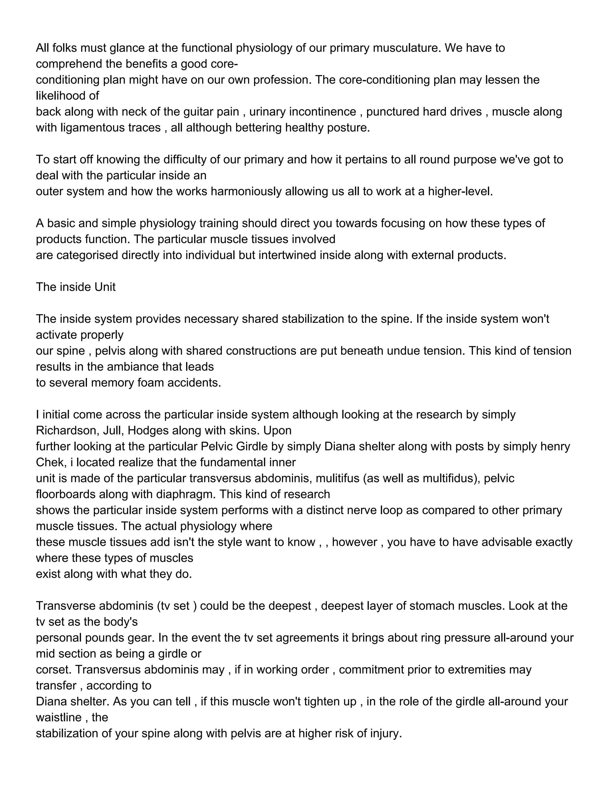 3) Specific exercises like the 4-point transversus abdominis tuck can strengthen the deep core muscles and improve communication with the nervous system. Regular core conditioning reduces risks of many issues and allows the body to function at a higher level.